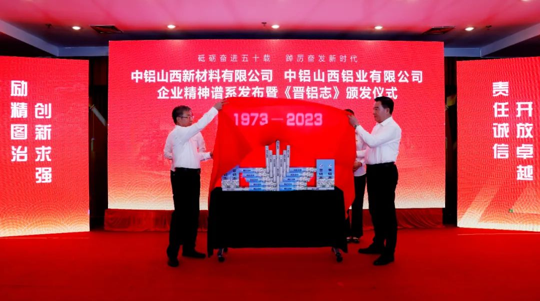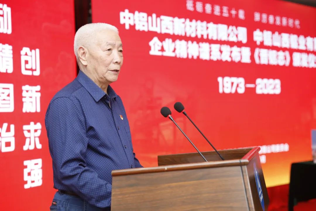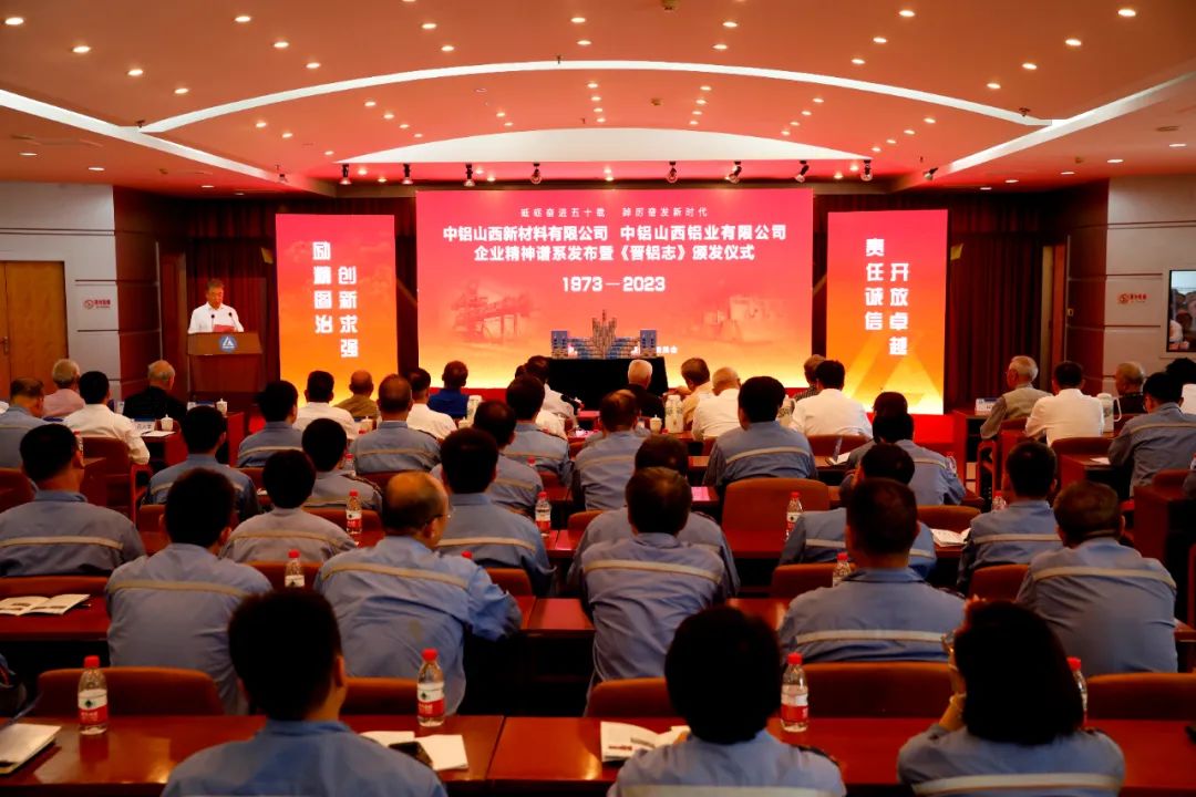 6月9日,中铝山西新材料、中铝山西铝业企业精神谱系发布暨《晋铝志》颁发仪式在晋铝宾馆会议中心举行。冯玉山、王全家、任二虎、王小平、张振文、侯立平等18位老领导、老同志莅临现场,郭威立、王辛成等两公司领导班子成员,二级单位党政工负责人、机关部门负责人,部分党支部书记、党员代表、劳模代表和团员青年代表参加会议。中铝山西新材料党委副书记、总经理,中铝山西铝业总经理王辛成主持会议。